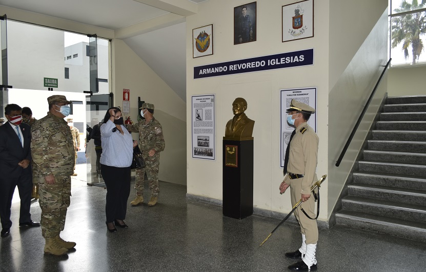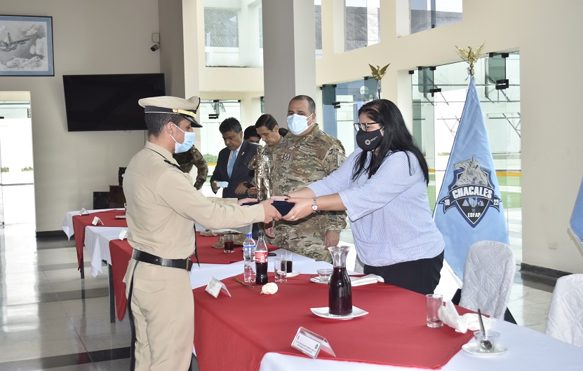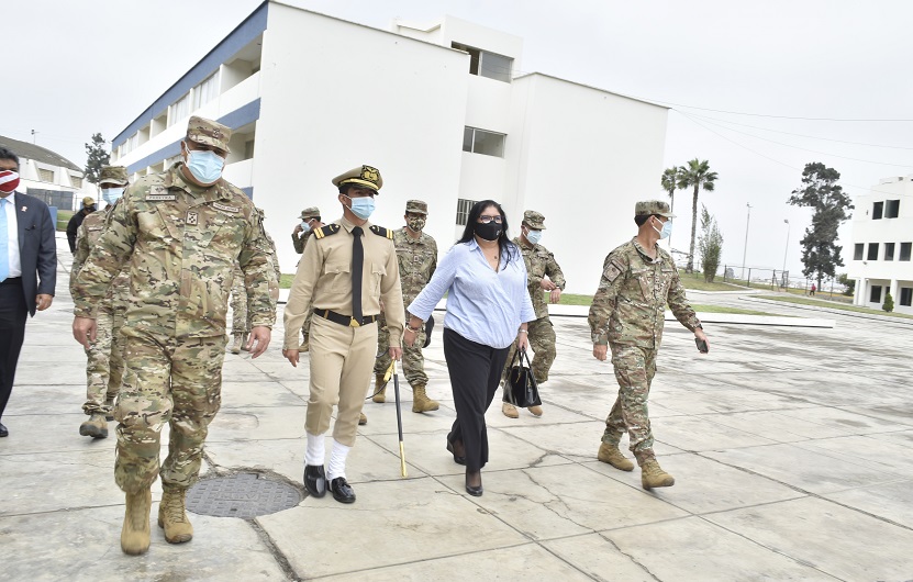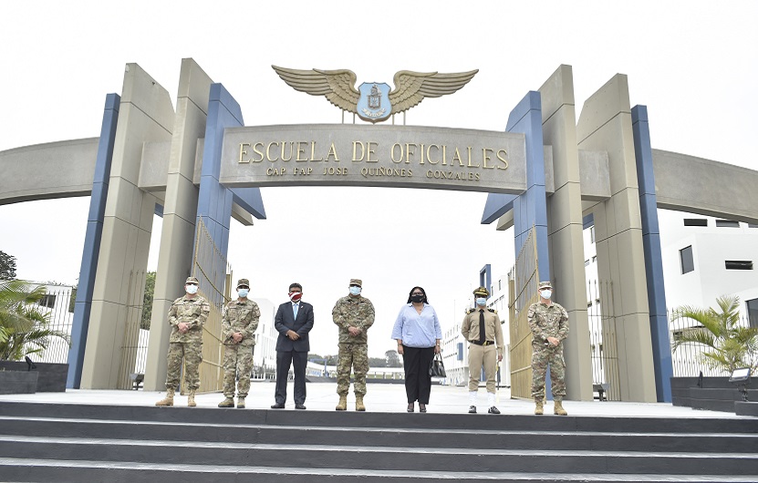 La ministra de Defensa, Nuria Esparch, visitó las instalaciones de la Escuela de Oficiales, estuvo acompañada por el Comandante General de la Fuerza Aérea del Perú y el Director General de Educación y Doctrina FAP.