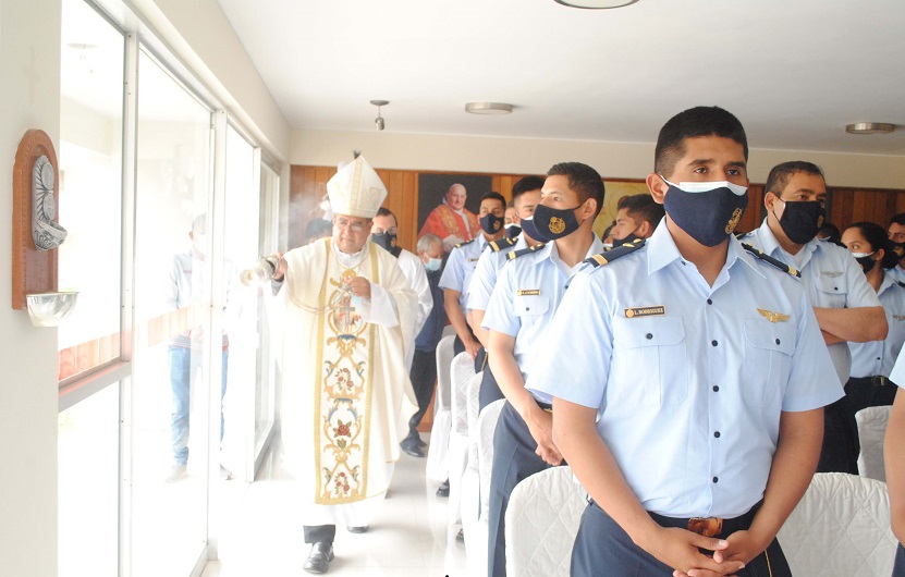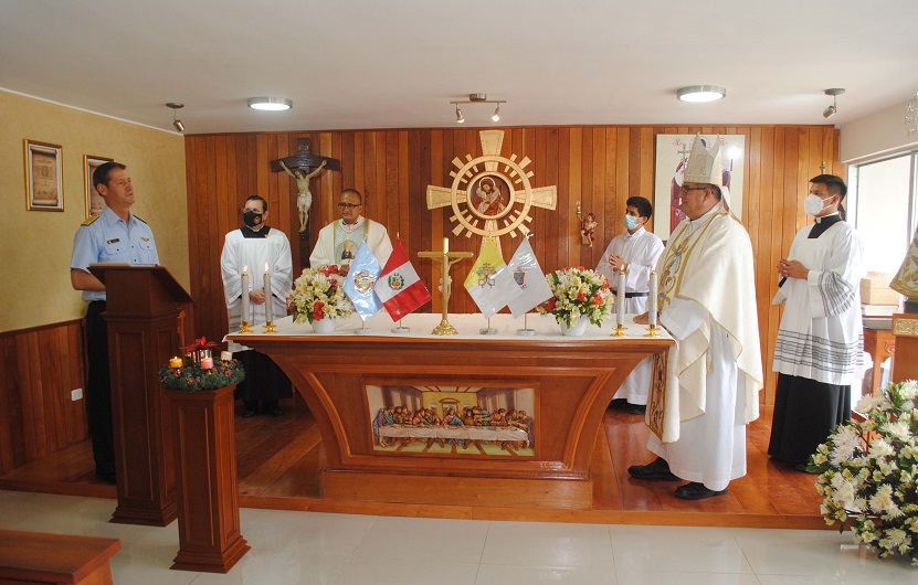 Para tal efecto, y previa coordinación con el director de la Escuela, MAG. FAP Juan Pablo Tryon Carbone y el capellán Miguel del Rio Sifuentes, se contó con la presencia del Obispo General Castrense del Perú, monseñor Juan Carlos Vera Plasencia, quien ofició la celebración eucarística.